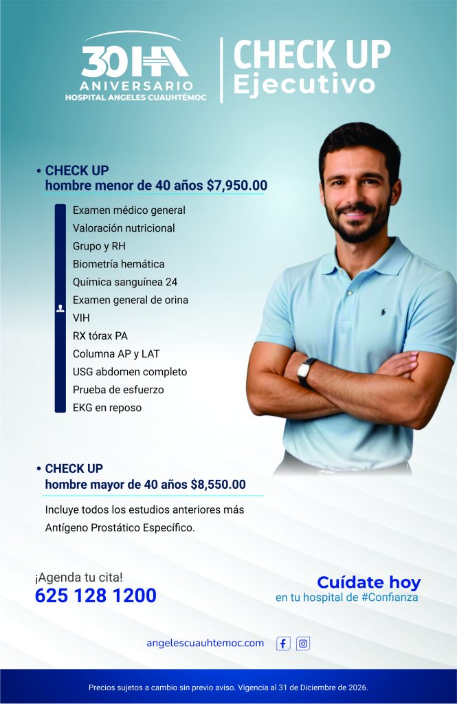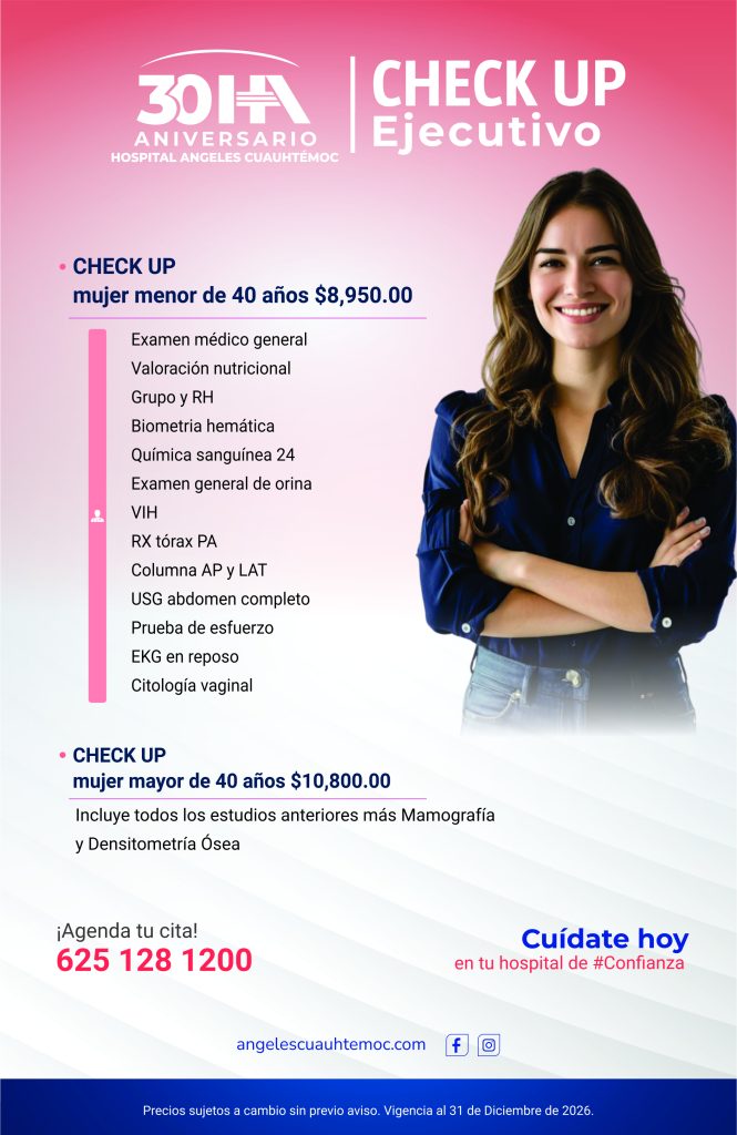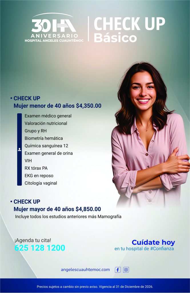 Conoce las promociones en salud que tenemos para ti Hospital Angeles Cuauhtémoc tiene para ti constantemente promociones y paquetes para conservar tu salud y la de tu familia.Confía en el hospital de vanguardia que cuida de ti.